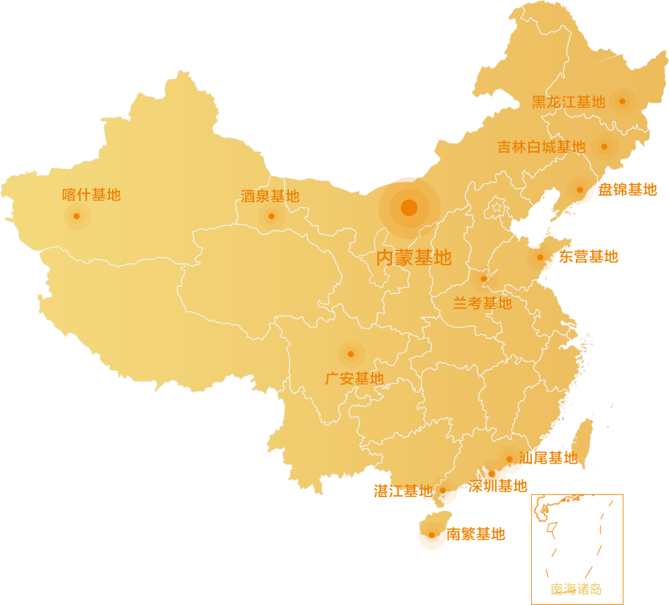 中農海稻內蒙古海水稻種植基地位于興安盟市、包頭市。